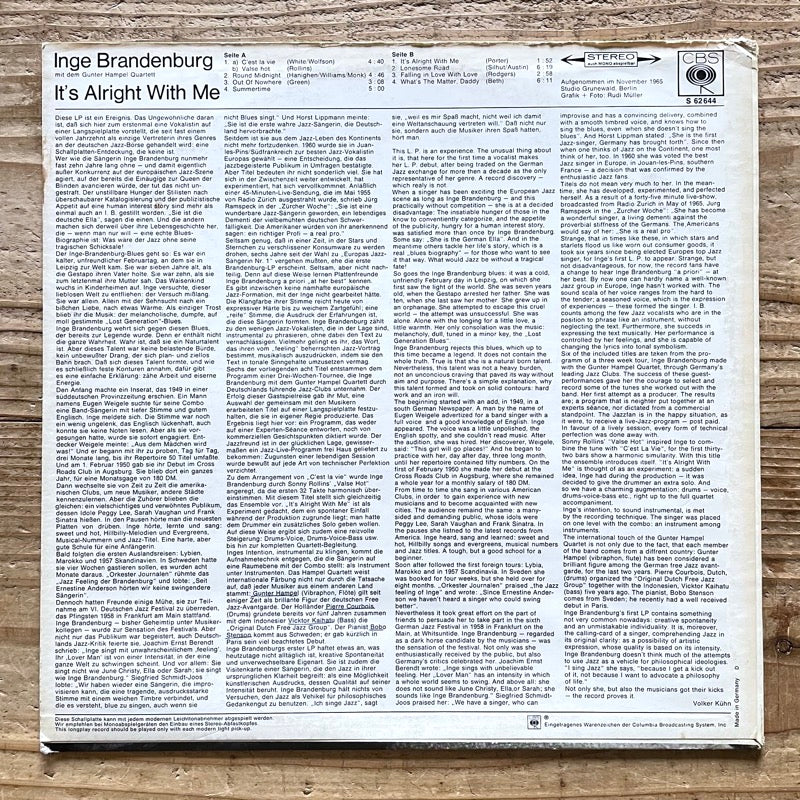 INGE BRANDENBURG / IT'S ALRIGHT WITH ME - German CBS Original