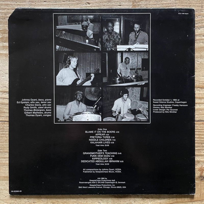 1984 album by bassist Johnny Dyani includes "Grandmother's Teaching", "Kalahari Lives" and more. Featuring Ed Epstein (as, ts), Charles Davis (as), Rudy Smith (steel drums), etc.