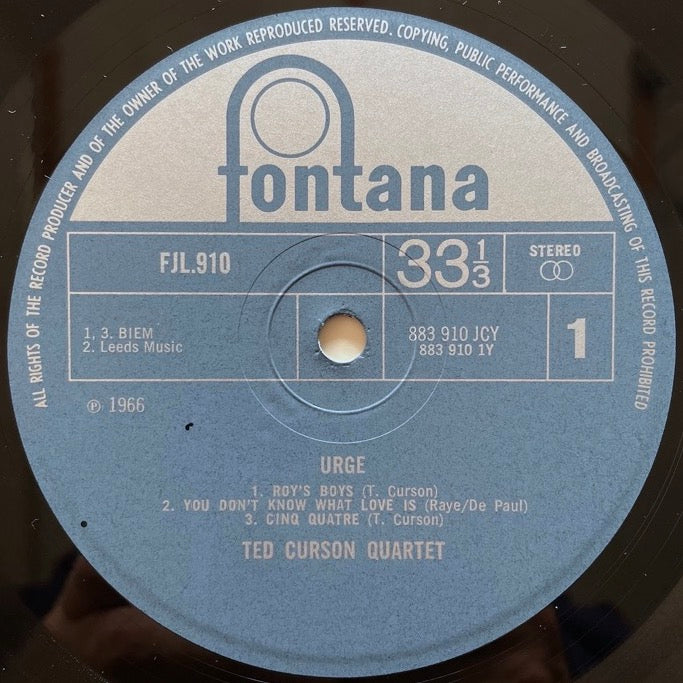 TED CURSON QUARTET / URGE - Dutch Fontana Original